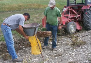 Nous les arrachons avec une vieille machine et nous les ramassons et trions à la main…